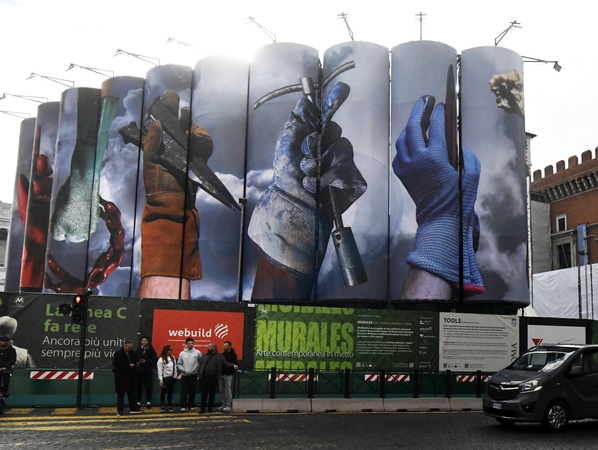 Tools by Elisabetta Benassi. A new work on the silos at the Metro C construction site.