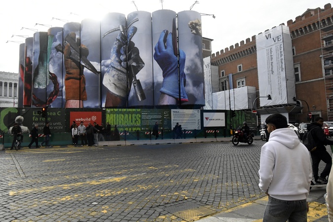 The third work in the artistic project "Murales. Contemporary Art in the Metro" is on display at the Stazione Venezia construction site. The new work is "Tools," by Elisabetta Benassi. Rome, December 5th, 2025, Credit:Mimmo Frassineti/AGF / Avalon