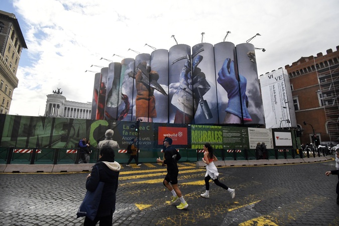 The third work in the artistic project "Murales. Contemporary Art in the Metro" is on display at the Stazione Venezia construction site. The new work is "Tools," by Elisabetta Benassi. Rome, December 5th, 2025, Credit:Mimmo Frassineti/AGF / Avalon