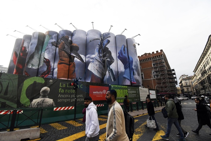 The third work in the artistic project "Murales. Contemporary Art in the Metro" is on display at the Stazione Venezia construction site. The new work is "Tools," by Elisabetta Benassi. Rome, December 5th, 2025, Credit:Mimmo Frassineti/AGF / Avalon