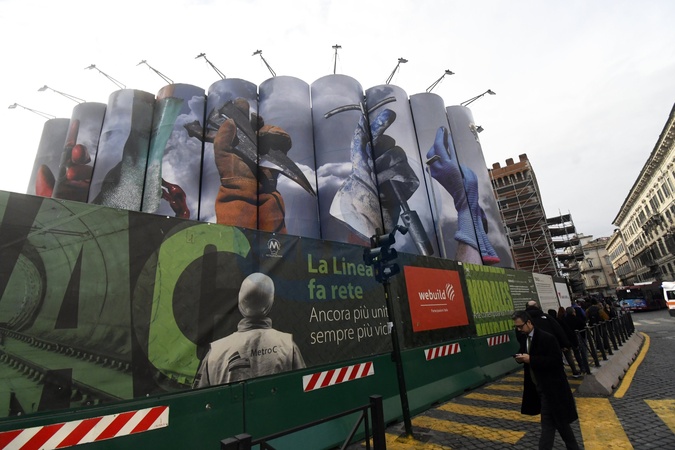 The third work in the artistic project "Murales. Contemporary Art in the Metro" is on display at the Stazione Venezia construction site. The new work is "Tools," by Elisabetta Benassi. Rome, December 5th, 2025, Credit:Mimmo Frassineti/AGF / Avalon