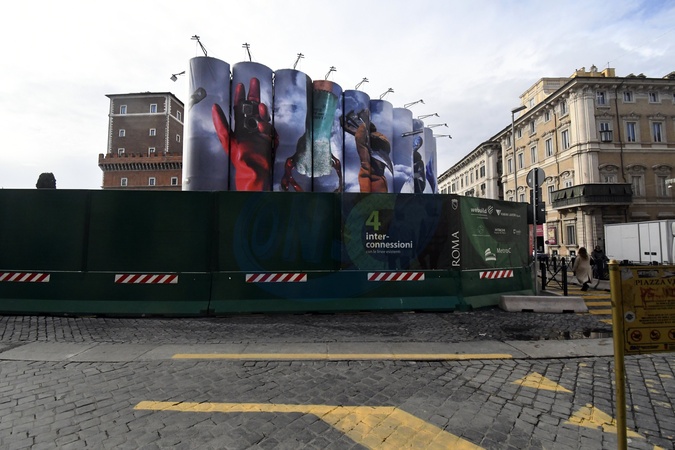 The third work in the artistic project "Murales. Contemporary Art in the Metro" is on display at the Stazione Venezia construction site. The new work is "Tools," by Elisabetta Benassi. Rome, December 5th, 2025, Credit:Mimmo Frassineti/AGF / Avalon