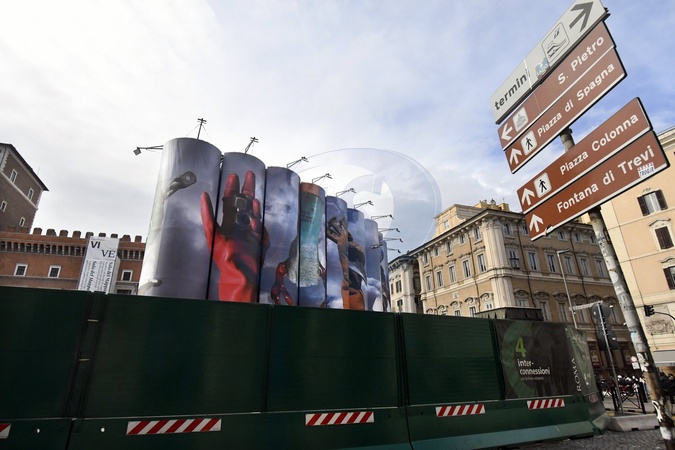 The third work in the artistic project "Murales. Contemporary Art in the Metro" is on display at the Stazione Venezia construction site. The new work is "Tools," by Elisabetta Benassi. Rome, December 5th, 2025, Credit:Mimmo Frassineti/AGF / Avalon