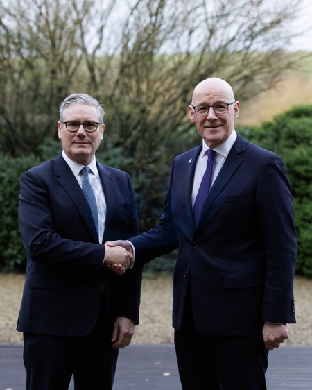 05/12/2025. Cardiff, United Kingdom. Prime Minister Keir Starmer meets with First Minister of Scotland John Swinney as he attends the British Irish Council., Credit:Simon Dawson / Avalon