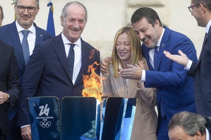 Italy, Rome, 5 December, 2025: Inauguration ceremony of the Olympic Flame Journey (Milan-Cortina 2026 Winter Olympic Games) at Piazza del Quirinale, in the photo (L) Luca Zaia, Giorgia Meloni and Matteo Salvini, Credit:Stefano Carofei / Avalon
