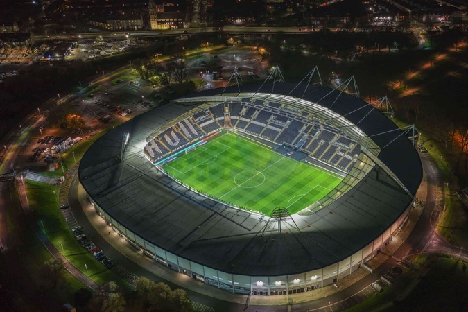 An aerial view of The MKM Stadium during the Sky Bet Championship match Hull City vs Middlesbrough at MKM Stadium, Hull, United Kingdom, 5th December 2025, Credit:Mark Cosgrove/News Images / Avalon