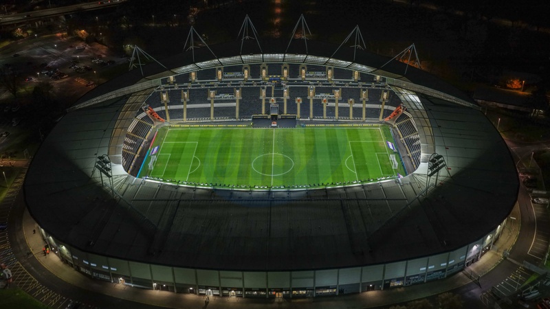 An aerial view of The MKM Stadium during the Sky Bet Championship match Hull City vs Middlesbrough at MKM Stadium, Hull, United Kingdom, 5th December 2025, Credit:Mark Cosgrove/News Images / Avalon