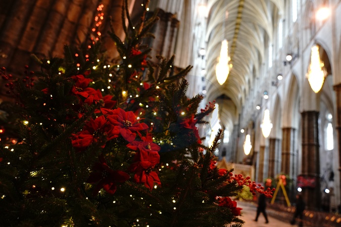 A close-up of the decorations on one of the Christmas trees inside the Abbey ahead of the Together At Christmas carol service at Westminster Abbey in London. Picture date: Friday December 5, 2025., Credit:Aaron Chown / Avalon