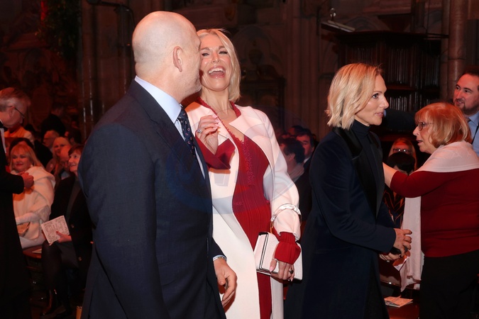 LONDON, ENGLAND - DECEMBER 05: Mike Tindall, Hannah Waddingham and Zara Tindall attend the 'Together At Christmas' Carol Service at Westminster Abbey on December 05, 2025 in London, England. Led by The Princess and supported by The Royal Foundation, the annual event offered a chance to pause and reflect on the values of love, compassion, and the connections we share. The service also highlighted remarkable individuals from across the UK who have demonstrated extraordinary kindness, empathy, and support within their communities., Credit:Chris Jackson / Avalon