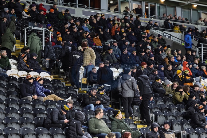 Hull fans leave the MKM stadium with ten minutes lef during the Sky Bet Championship match Hull City vs Middlesbrough at MKM Stadium, Hull, United Kingdom, 5th December 2025, Credit:Mark Cosgrove/News Images / Avalon