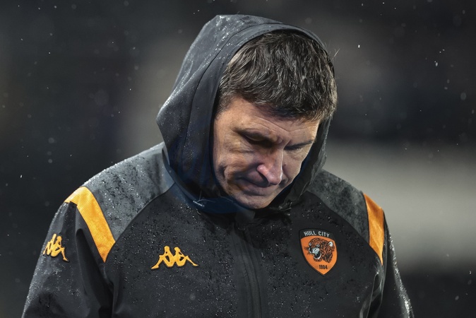 A dejected Sergej Jakirovic manager of Hull City looks to the ground as his side trail 1-4 during the Sky Bet Championship match Hull City vs Middlesbrough at MKM Stadium, Hull, United Kingdom, 5th December 2025, Credit:Mark Cosgrove/News Images / Avalon