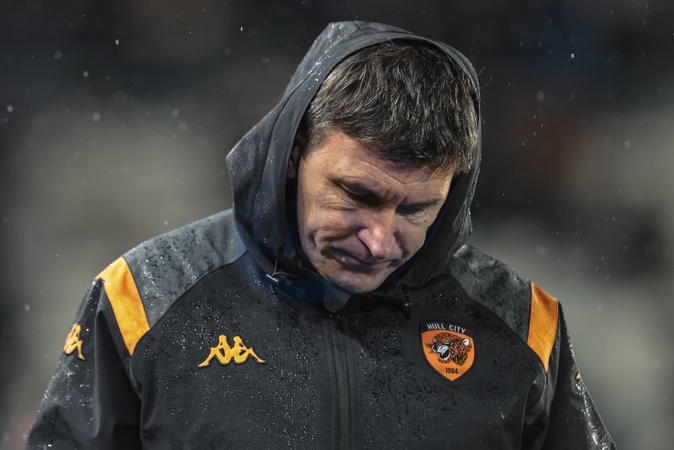 A dejected Sergej Jakirovic manager of Hull City looks to the ground as his side trail 1-4 during the Sky Bet Championship match Hull City vs Middlesbrough at MKM Stadium, Hull, United Kingdom, 5th December 2025, Credit:Mark Cosgrove/News Images / Avalon