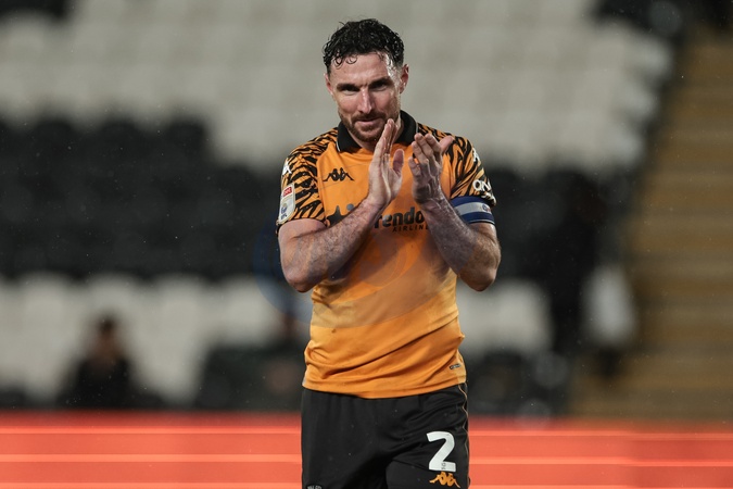 Lewis Coyle of Hull City applauds the fans after the final whistle during the Sky Bet Championship match Hull City vs Middlesbrough at MKM Stadium, Hull, United Kingdom, 5th December 2025, Credit:Mark Cosgrove/News Images / Avalon