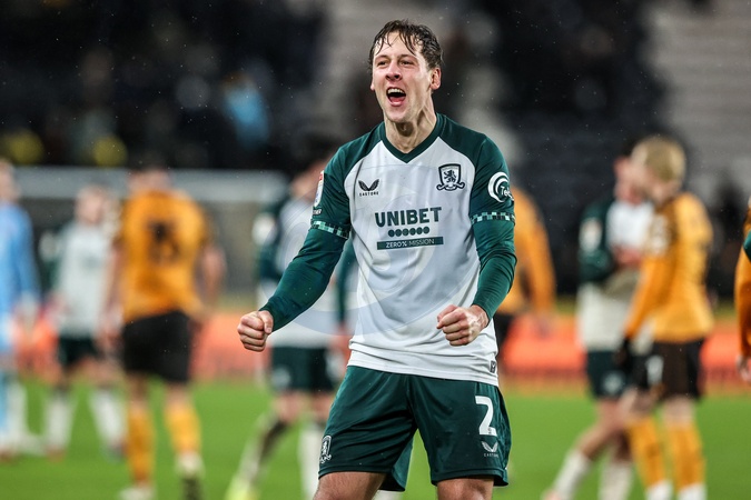 Callum Brittain of Middlesbrough celebrates the win during the Sky Bet Championship match Hull City vs Middlesbrough at MKM Stadium, Hull, United Kingdom, 5th December 2025, Credit:Ae Cosgrove/News Images / Avalon