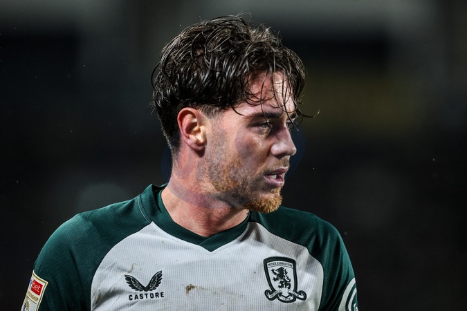 Hayden Hackney of Middlesbrough during the Sky Bet Championship match Hull City vs Middlesbrough at MKM Stadium, Hull, United Kingdom, 5th December 2025, Credit:Ae Cosgrove/News Images / Avalon