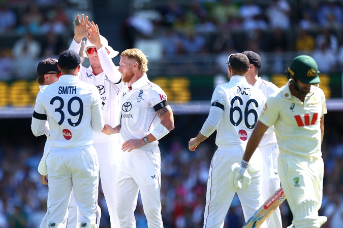Ben Stokes of England celebrates the dismissal of Michael Neser of Australia during Day 3 of the Second Test in the NRMA Insurance Ashes Series Australia vs England at The Gabba, Brisbane Cricket Ground, Brisbane, Australia, 6th December 2025, Credit:Patrick Hoelscher/News Images / Avalon