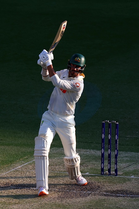 Mitchell Starc of Australia bats during Day 3 of the Second Test in the NRMA Insurance Ashes Series Australia vs England at The Gabba, Brisbane Cricket Ground, Brisbane, Australia, 6th December 2025, Credit:Patrick Hoelscher/News Images / Avalon