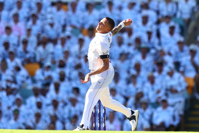 Brydon Carse of England bowls during Day 3 of the Second Test in the NRMA Insurance Ashes Series Australia vs England at The Gabba, Brisbane Cricket Ground, Brisbane, Australia, 6th December 2025, Credit:Patrick Hoelscher/News Images / Avalon