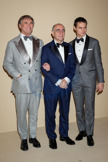 Brunello Cucinelli, Giuseppe Tornatore and Saul Nanni attend the World Premiere of "Brunello, Il Visionario Garbato" at Cinecittà Studios in Rome, Italy on 04 December 2025., Credit:Stefano Costantino TTL / Avalon