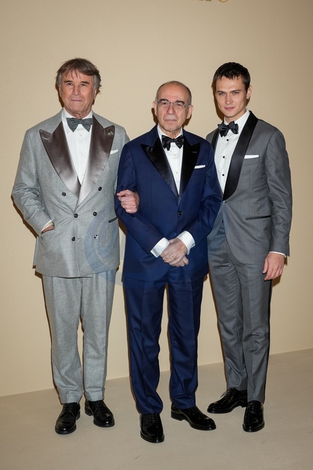 Brunello Cucinelli, Giuseppe Tornatore and Saul Nanni attend the World Premiere of "Brunello, Il Visionario Garbato" at Cinecittà Studios in Rome, Italy on 04 December 2025., Credit:Stefano Costantino TTL / Avalon