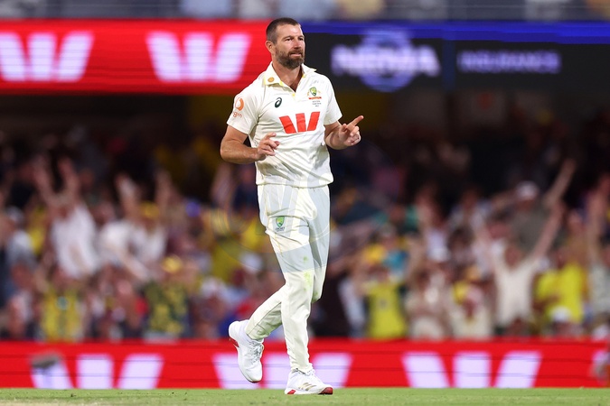 Michael Neser of Australia dismisses Ollie Pope of England during Day 3 of the Second Test in the NRMA Insurance Ashes Series Australia vs England at The Gabba, Brisbane Cricket Ground, Brisbane, Australia, 6th December 2025, Credit:Patrick Hoelscher/News Images / Avalon