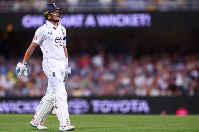 Ollie Pope of England is dismissed during Day 3 of the Second Test in the NRMA Insurance Ashes Series Australia vs England at The Gabba, Brisbane Cricket Ground, Brisbane, Australia, 6th December 2025, Credit:Patrick Hoelscher/News Images / Avalon