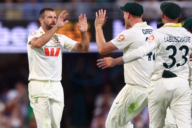 Michael Neser of Australia dismisses Zak Crawley of England during Day 3 of the Second Test in the NRMA Insurance Ashes Series Australia vs England at The Gabba, Brisbane Cricket Ground, Brisbane, Australia, 6th December 2025, Credit:Patrick Hoelscher/News Images / Avalon