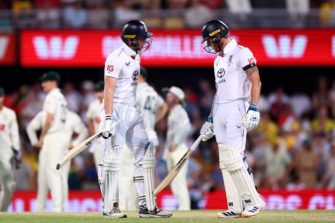 Jamie Smith of England and Ben Stokes of England during Day 3 of the Second Test in the NRMA Insurance Ashes Series Australia vs England at The Gabba, Brisbane Cricket Ground, Brisbane, Australia, 6th December 2025, Credit:Patrick Hoelscher/News Images / Avalon