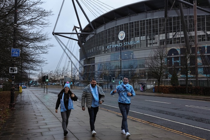 Man City fans outside the Etihad Stadium during the Premier League match Manchester City vs Sunderland at Etihad Stadium, Manchester, United Kingdom, 6th December 2025, Credit:Mark Cosgrove/News Images / Avalon