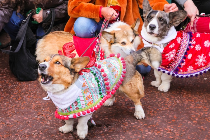 London, UK. 06th Dec, 2025. Corgis in Christmas jumpers and festive outfits, together with their cheerful owners, make their way from Green Park fun dog walk along some of London's sights and landmarks., Credit:Imageplotter / Avalon