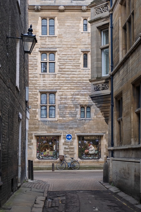 Bicycle parked by one-way sign in Trinity street, in centre of Cambridge, Cambridgeshire, UK. 05 December 2025., Credit:Mark fairhurst / Avalon