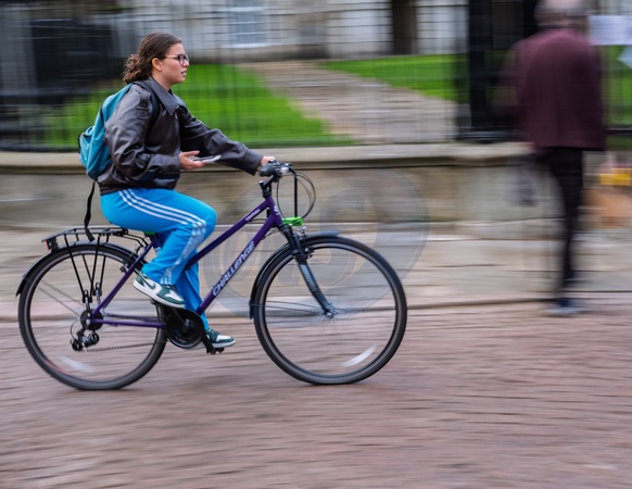 Bicycle in motion in the centre of Cambridge, Cambridgeshire. UK