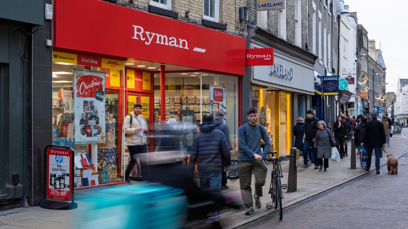 Rymans shop in Sydney street, Cambridge, Cambridgeshire, UK. 05 December 2025., Credit:Mark fairhurst / Avalon