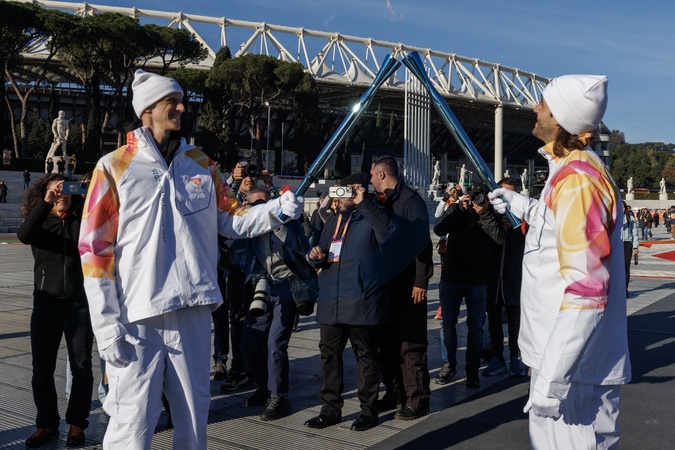 The Olympic Torch departs Rome for the 2026 Milan-Cortina Winter Olympics.