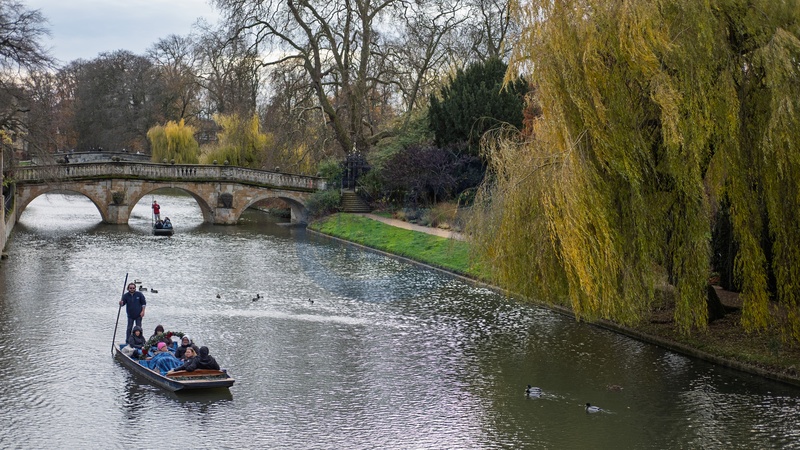 Punting along the River Cam by "The Backs" in December. Cambridge, Cambridgeshire, UK. 05 December 2025., Credit:Mark fairhurst / Avalon