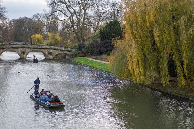 Punting along the River Cam by "The Backs" in December. Cambridge, Cambridgeshire, UK. 05 December 2025., Credit:Mark fairhurst / Avalon