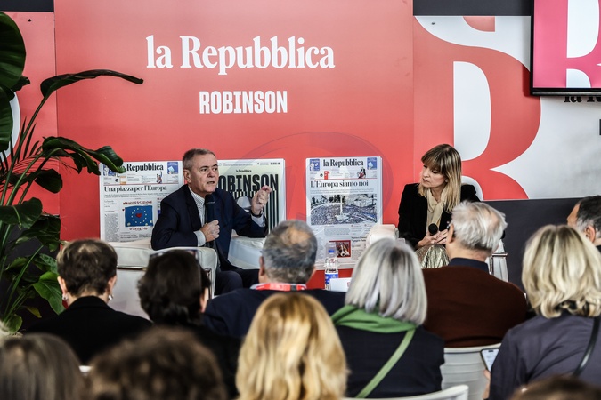 05/12/2025 Rome, More Books, More Freedom, Robinson Arena, pictured Ezio Mauro, Annalisa Cuzzocrea, Credit:Francesca Bolla / Avalon