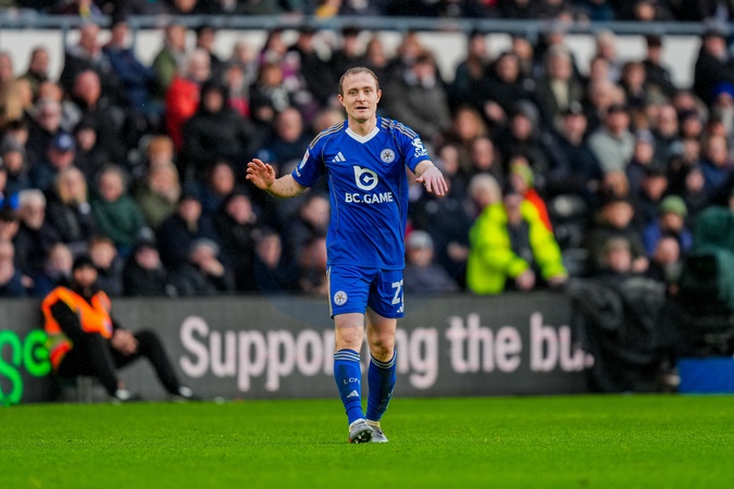 Oliver Skipp of Leicester City during the Sky Bet Championship match Derby County vs Leicester City at Pride Park Stadium, Derby, United Kingdom, 6th December 2025, Credit:Maynard Manyowa/News Images / Avalon