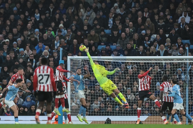 Manchester City goalkeeper Gianluigi Donnarumma makes a save during the Premier League match Manchester City vs Sunderland at Etihad Stadium, Manchester, United Kingdom, 6th December 2025, Credit:Mark Cosgrove/News Images / Avalon