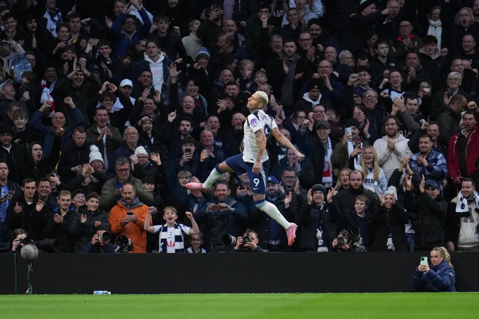 Richarlison of Tottenham Hotspur scores to make it 1-0 during the Premier League match Tottenham Hotspur vs Brentford at Tottenham Hotspur Stadium, London, United Kingdom, 6th December 2025, Credit:Harvey Murphy/News Images / Avalon