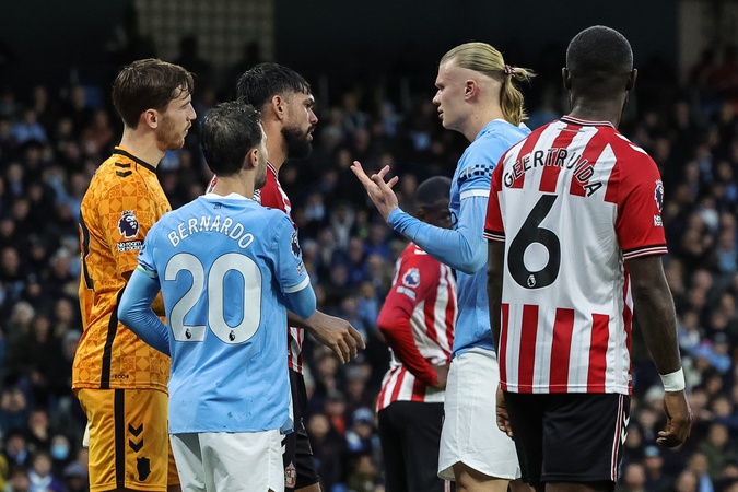 Altercation with Omar Alderete of Sunderland and Erling Haaland of Manchester City ‘during the Premier League match Manchester City vs Sunderland at Etihad Stadium, Manchester, United Kingdom, 6th December 2025, Credit:Mark Cosgrove/News Images / Avalon