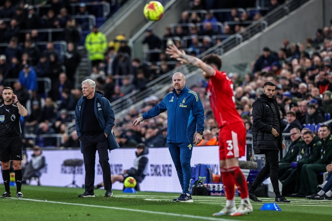 Sean Dyche manager of Nottingham Forest gives his team instructions during the Premier League match Everton vs Nottingham Forest at Hill Dickinson Stadium, Liverpool, United Kingdom, 6th December 2025, Credit:Ae Cosgrove/News Images / Avalon