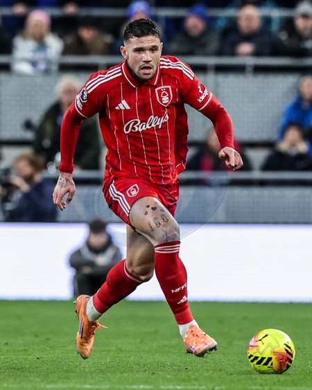 Morato of Nottingham Forest breaks with the ball during the Premier League match Everton vs Nottingham Forest at Hill Dickinson Stadium, Liverpool, United Kingdom, 6th December 2025, Credit:Ae Cosgrove/News Images / Avalon