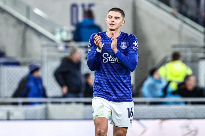 Vitaliy Mykolenko of Everton applauds the fans after the game during the Premier League match Everton vs Nottingham Forest at Hill Dickinson Stadium, Liverpool, United Kingdom, 6th December 2025, Credit:Ae Cosgrove/News Images / Avalon