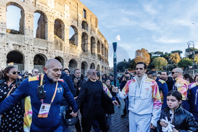 The Olympic Torch departs Rome for the 2026 Milan-Cortina Winter Olympics.