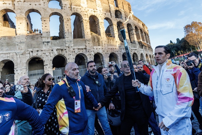 The Olympic Torch departs Rome for the 2026 Milan-Cortina Winter Olympics.