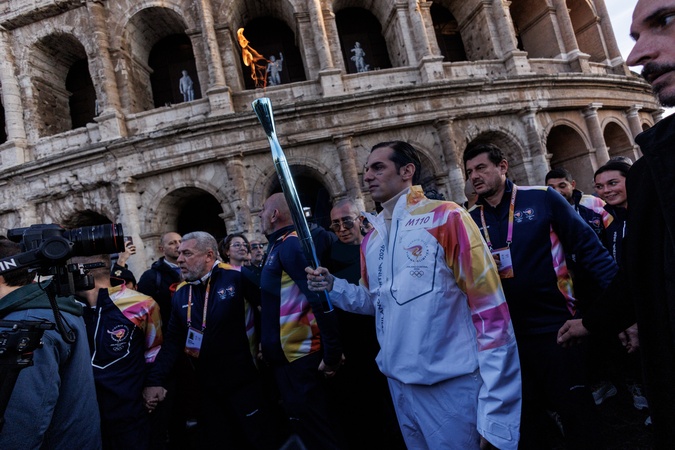The Olympic Torch departs Rome for the 2026 Milan-Cortina Winter Olympics.