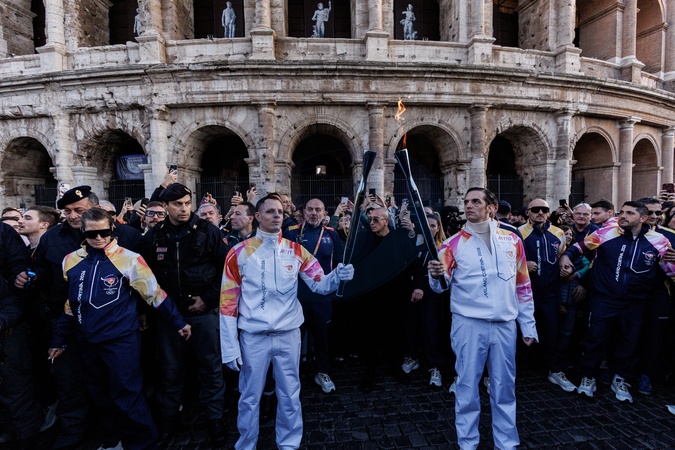 The Olympic Torch departs Rome for the 2026 Milan-Cortina Winter Olympics.