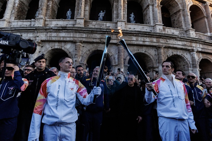 The Olympic Torch departs Rome for the 2026 Milan-Cortina Winter Olympics.