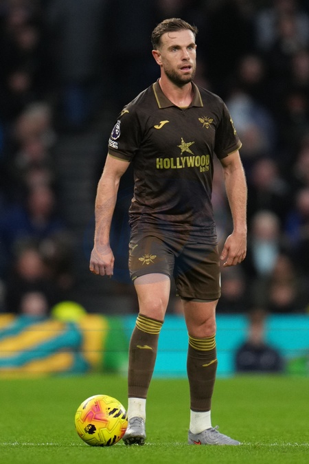 Jordan Henderson of Brentford on the ball during the Premier League match Tottenham Hotspur vs Brentford at Tottenham Hotspur Stadium, London, United Kingdom, 6th December 2025, Credit:Harvey Murphy/News Images / Avalon